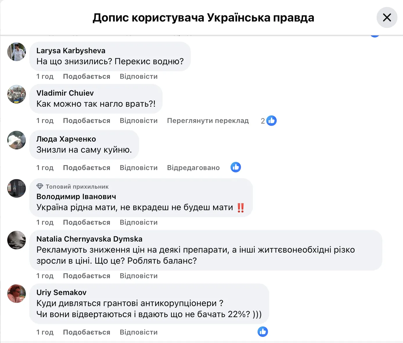 "Только вчера была в аптеке! Цены не только снизились, они еще и поднялись на 20 грн! Где скидка?!" — возмутилась одна из комментаторок.