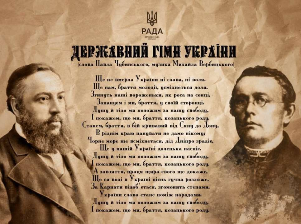 Слова украинского гимна в далеком 1862 году написал поэт Павел Чубинский, а затем их положил на музыку священник и композитор Михаил Вербицкий. Впервые эта песня прозвучала в 1865 году на годовщине Тараса Шевченко в Перемышле.