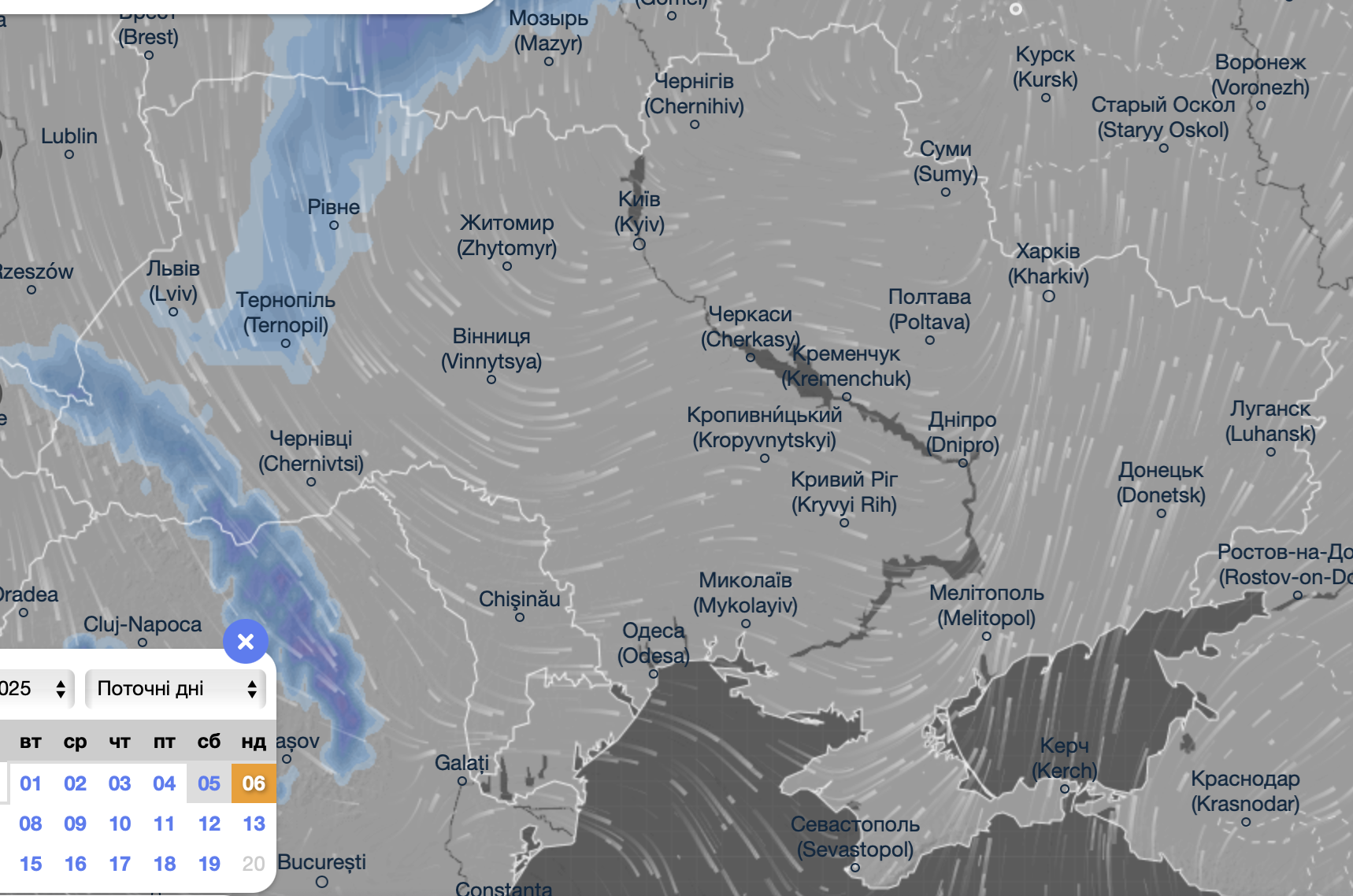 Судя по синоптической карте, в воскресенье, 6 апреля, снег стоит ожидать в Волынской, Ровенской, Хмельницкой, Тернопольской, Черновицкой, Закарпатской и Львовской областях.