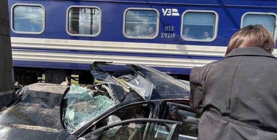 На Закарпатье поезд 11 метров протащил автомобиль по железнодорожным путям. В машине находились три человека, которые практически не пострадали.