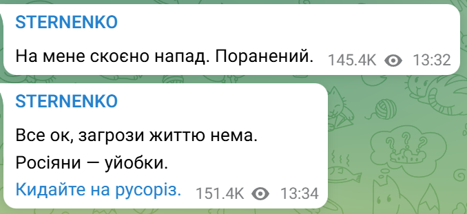 "Все ок, угрозы жизни нет. Россияне — у**бки", — добавил Стерненко.