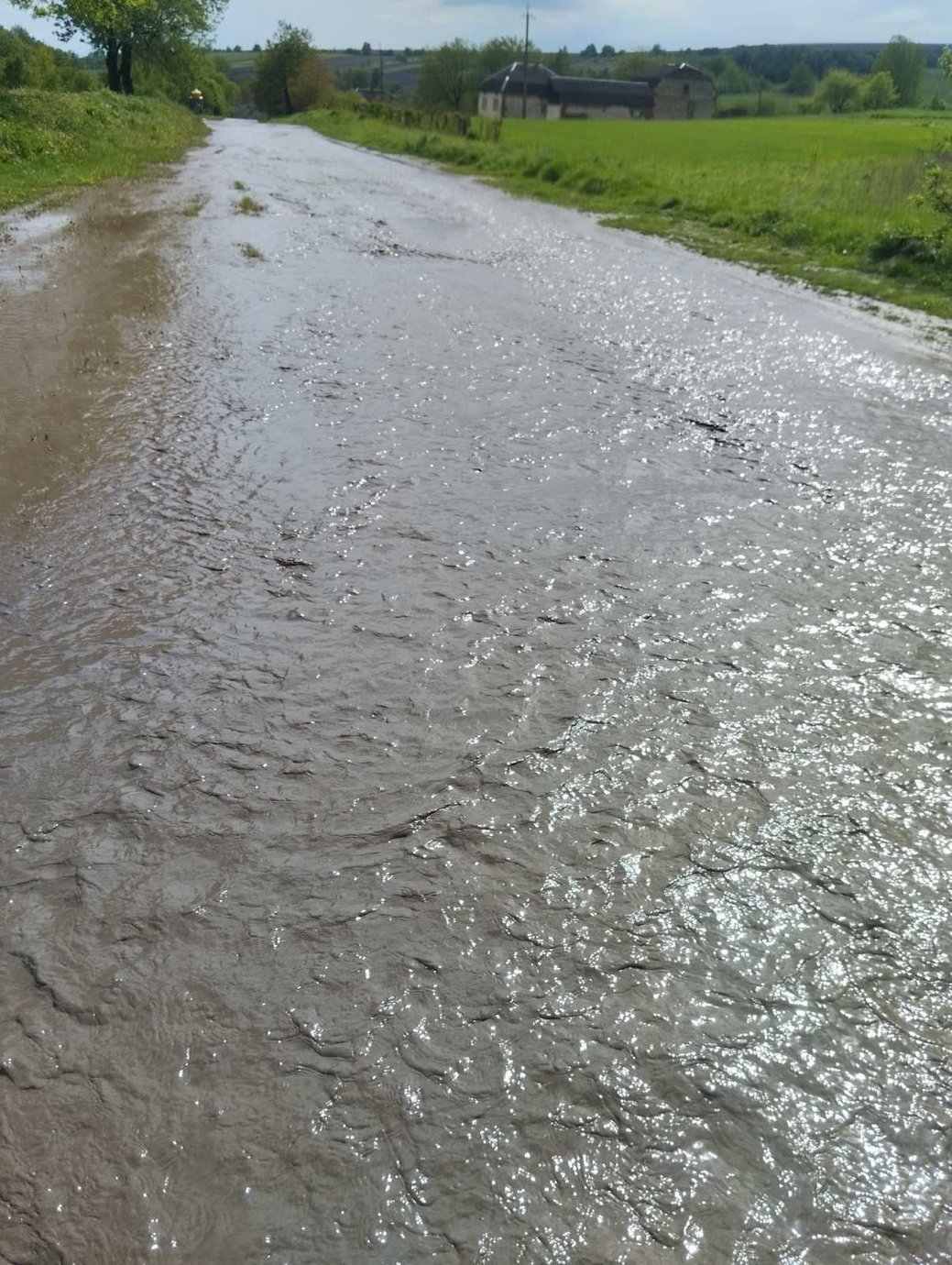 По его словам, в селе был сильный ливень с мощным градом, из-за чего с полей сошла вода и огромным потоком хлынула в деревню. Стихия затопила огороды на одной из улиц в Саранчуках.
