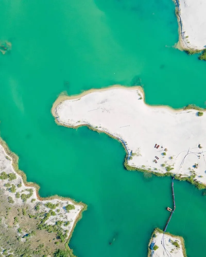 Этот карьер — чудо человеческой промышленности. Он появился в процессе добычи титано-циркониевых песков. Искусственные карьеры заполнила чистая вода из подземных источников. Ее цвет кажется бирюзовым из-за песка на дне. Он приобрел такой цвет после промышленной обработки.