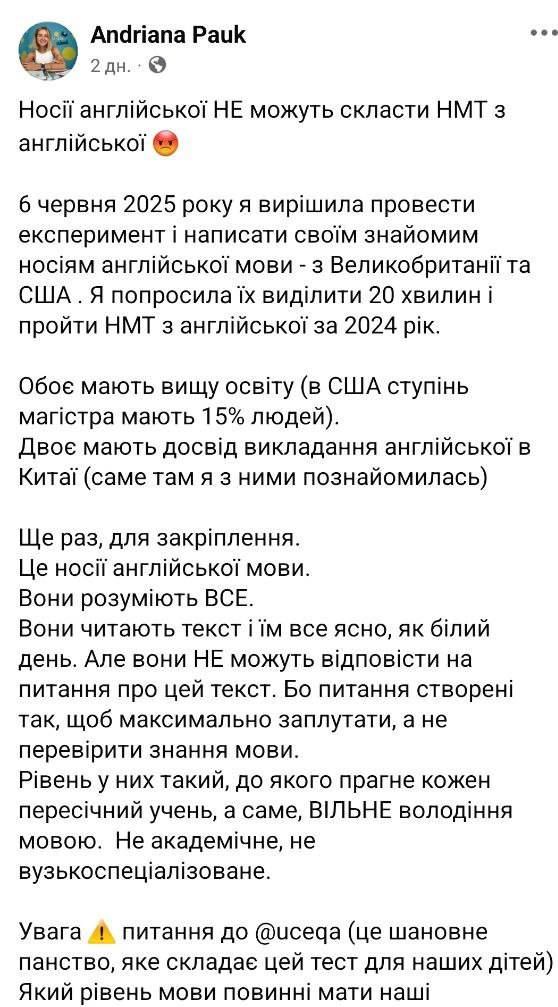 "Умные дети уедут": британец и американец провалили украинский НМТ по английскому языку (фото)