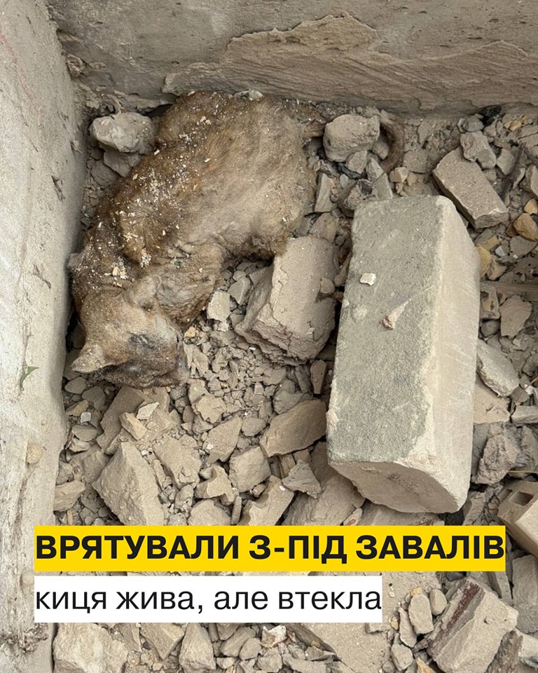 Кошка имела обгоревшую шерсть и дрожала всем телом, глаза выдавали страх. Она провела под столичными завалами после обстрела ВС РФ несколько дней. В темноте и среди взрывов она была одинока.