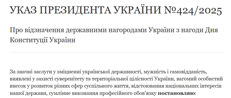 Артем Пивоваров и Степан Гига получили звание "заслуженных артистов Украины", говорится в Указе главы государства №424/2025 о награждении государственными наградами по случаю Дня Конституции Украины.