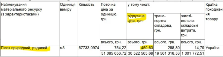 Журналисты отмечают, что таким образом в базе удалось поднять стоимость песка до 485 гривен, на фоне чего 570 гривен для строительства Подольского моста уже не выглядят столь серьезным повышением. Однако если бы его заказывали у реального производителя, а не перекупщика, то даже по цене 200 гривен за кубометр на его закупку пришлось бы выделить 14 миллионов гривен. А по факту выделено 37 миллионов.
