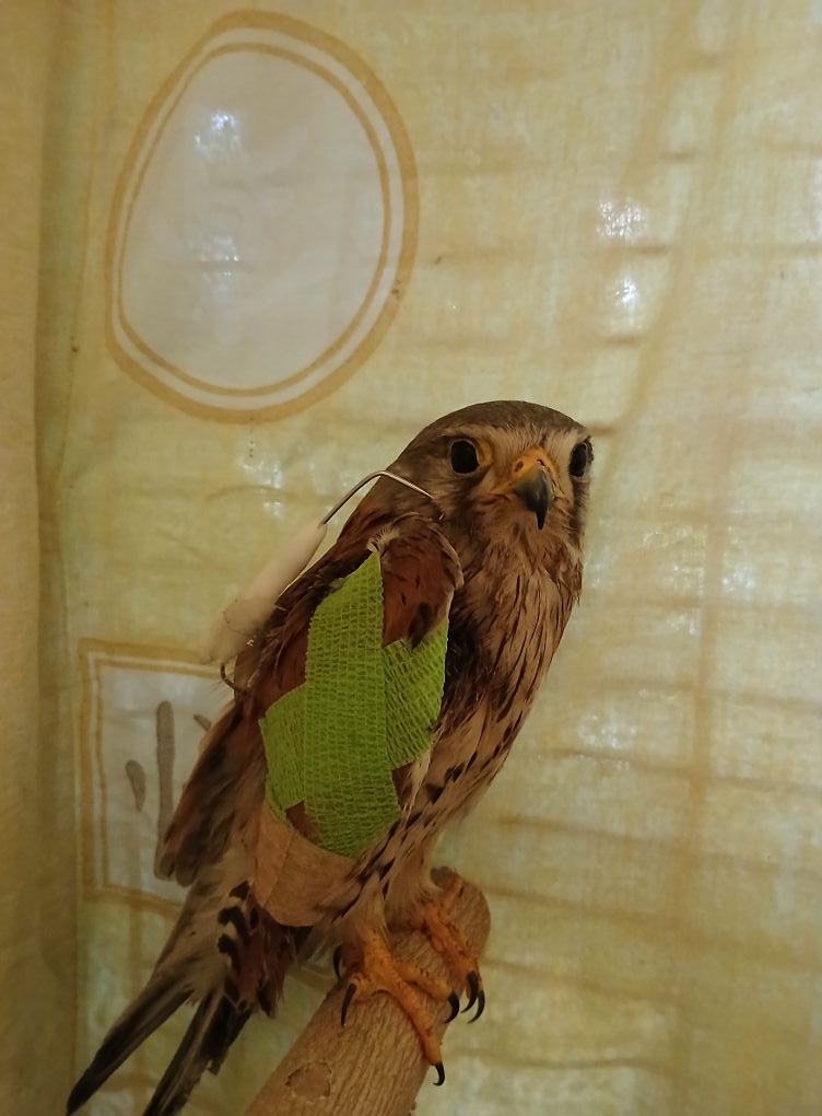 "Знакомьтесь, это Шрайк. Этот отважный пустельга справедливо решил, что русским дронам не место на нашей (и его личной) территории, и атаковал один из них. К сожалению, железо было крепче живой птицы, и он получил перелом правого плеча", – написала Вероника.