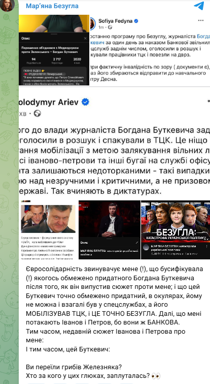 В своем телеграмм-канале Марьяна Безуглая заявила, что это политическая партия "Европейская солидарность" обвиняет ее в "бусификации какого-то ограниченно пригодного Богдана Буткевича".