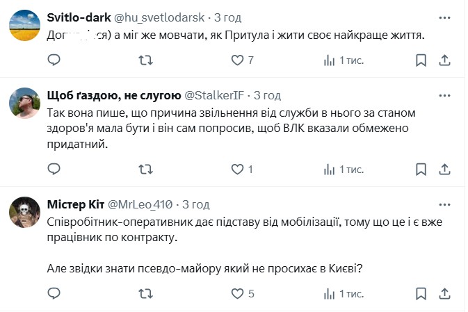 Тем временем спикер ОСУВ "Хортица" ВСУ Виктор Трегубов написал на Facebook о путанице с информацией о Буткевиче. По его мнению, не ясно, как именно он работал в ГУР и как возможно увольнение из армии, если его все же призвали. Также не понятна ситуация с ограничением по зрению и тем, что делать дальше. Блогер и военный Синицын, в свою очередь, отметил в аккаунте X "Майор", что внештатные сотрудники ГУР не имеют права на отсрочку от мобилизации. Также у него есть вопросы по "культурной контрпропаганде", которой, вероятно, занимался Буткевич.