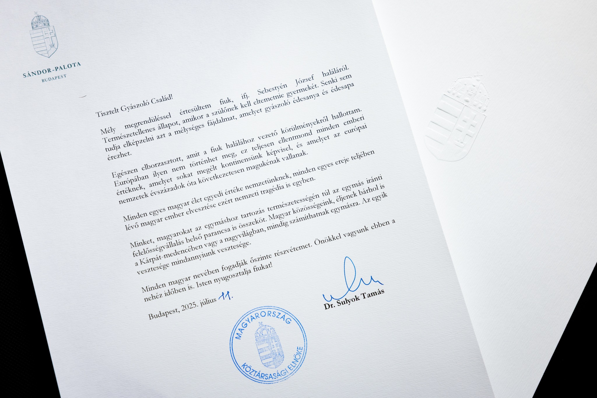 В письме к семье Иосифа Шебештеня Суйок также отметил, что смерть венгра является большой потерей для страны.