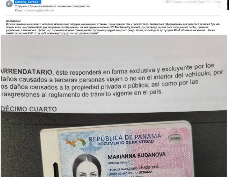 "Отправительница пыталась создать впечатление достоверности, подробно описывая обстоятельства получения информации. К письму был добавлен снимок, на котором было сфотографировано якобы панамское удостоверение личности с именем Марианны Будановой", — пишет издание.