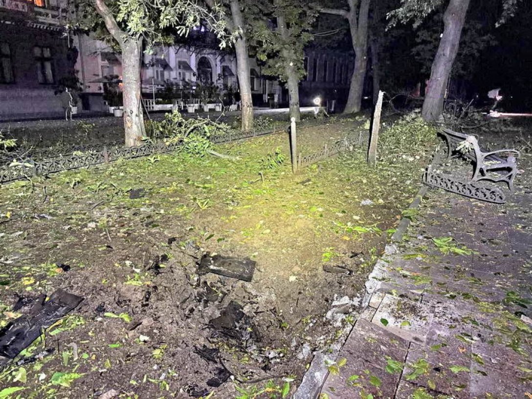 Беспилотник упал посреди бульвара и взорвался, в результате были выбиты окна в исторических зданиях, побиты фонари и скамейки.