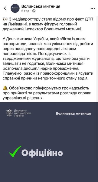 28 июня Волныская таможня сообщила на своей странице в Facebook, что их сотрудник "имел освобождение от работы из-за удостоверенной накануне врачом нетрудоспособности".