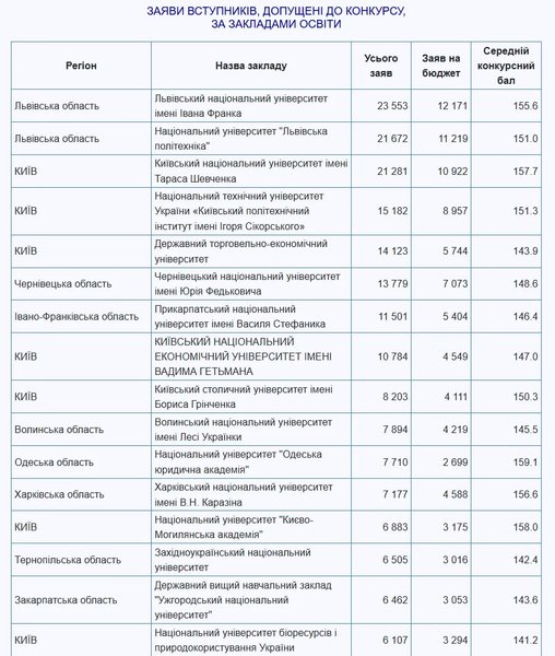 В первой десятке самых популярных университетов в этом году нет заведений из восточных и южных регионов. В то же время именно эти области государство дополнительно поддерживает. Так, для абитуриентов с недостаточным количеством баллов это может стать шансом поступить на бюджет.