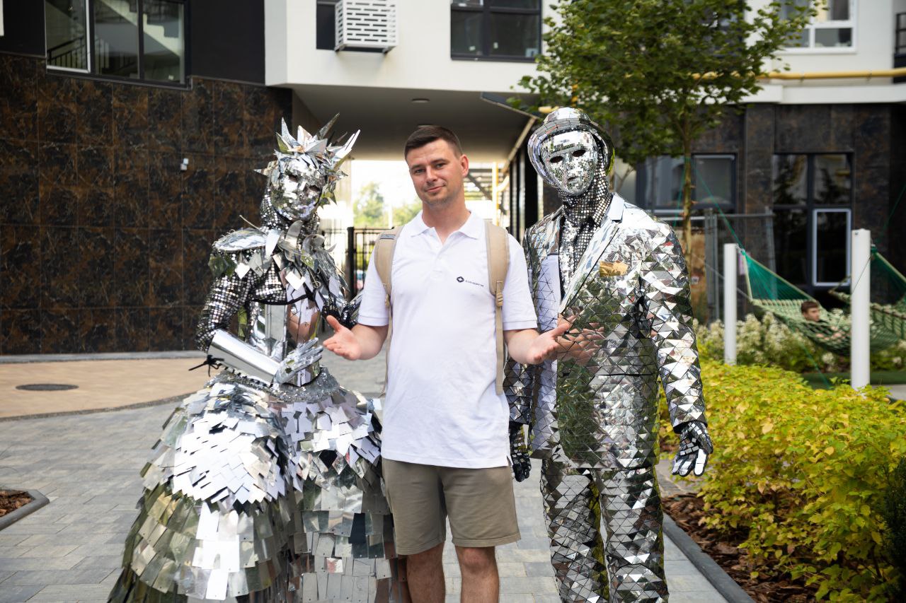 Гостей вечірки зустрічали дзеркальні люди — яскраві постаті, що ніби вийшли з сучасної казки. Їхня присутність додала події особливої магії. Поруч — крісла-груші, кокони, де зручно слухати музику, розмовляти або просто дивитися на небо. Малечу тішили бульбашкове шоу, магічний аквагрим, безлімітне морозиво та круасани.