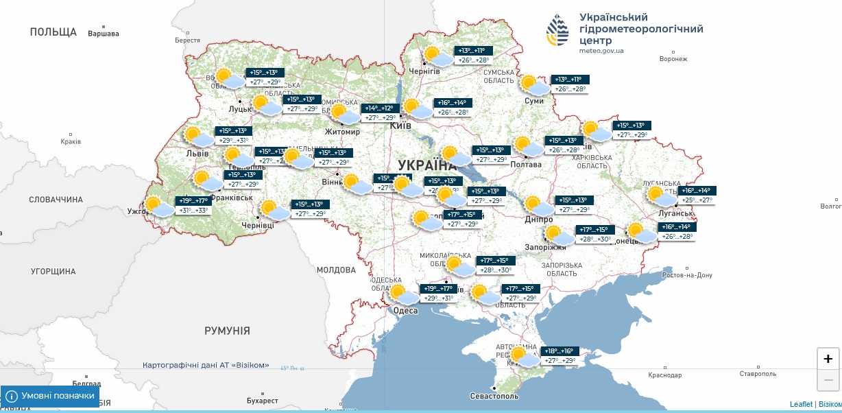В субботу, 16 августа, осадков синоптики не прогнозируют. При этом температурный фон повысится и сравняется по всей территории страны. Будет царить теплая погода — воздух днем будет прогреваться до +27... +29 градусов, в отдельных южных регионах до +30... +31 градуса. Температурный максимум на уровне +33 градуса в этот день может быть установлен на Закарпатье.