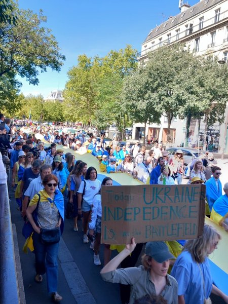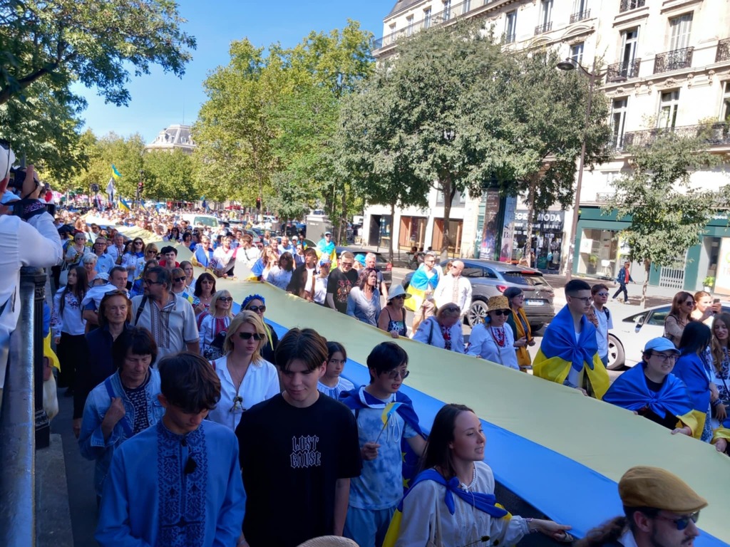 В Париже 24 августа активисты прошли мирным шествием по центру города, развернув украинский флаг, длиной 80 метров. Кроме шествия состоялся митинг, был обустроен городок украинских ассоциаций, а вечером Эйфелеву башню подсветили желто-голубыми цветами.