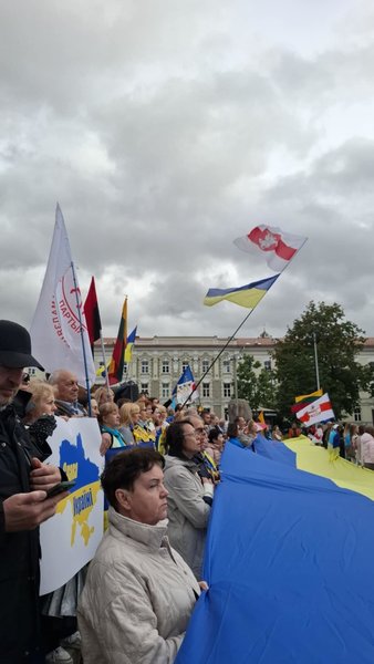 В столице Литвы, Вильнюсе, состоялась манифестация ко дню Независимости Украины. На центральной площади развернули 40-метровый флаг.