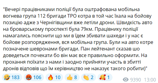 На момент публикации новости ни в 112-й бригаде ТрО, ни в патрульной полиции Киева не комментировали публикацию о штрафе для мобильной огневой группы в соцсетях.