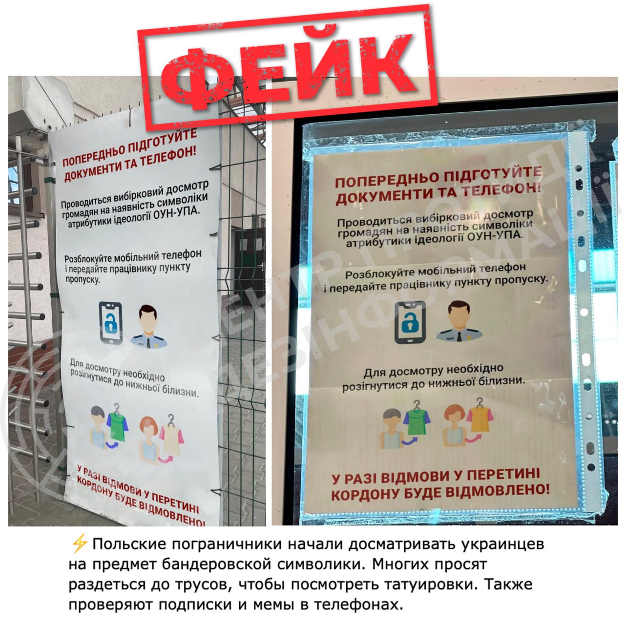 В частности, они сообщают, что украинцев избирательно проверяют на наличие символики и атрибутики ОУН-УПА, заставляют раздеваться до нижнего белья и требуют разблокировать телефоны для проверки. Однако эта информация не соответствует действительности, сообщает Центр противодействия дезинформации.