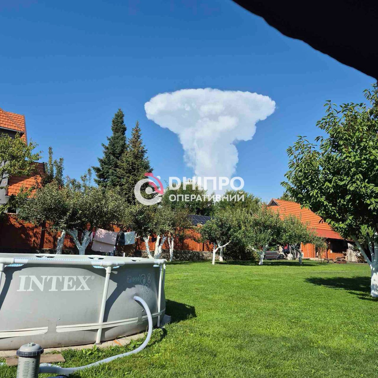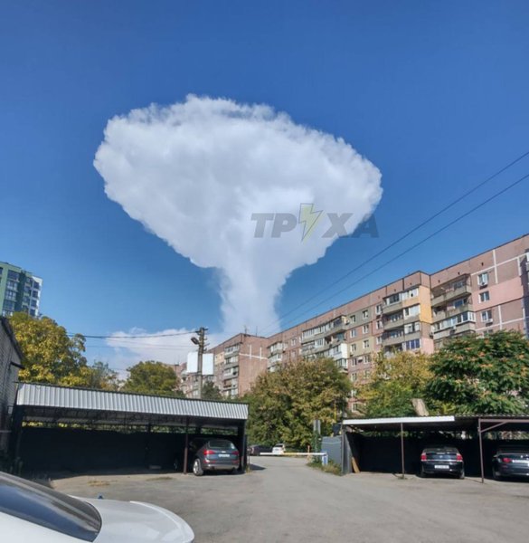 В небе над Днепром поднялось облако, напоминающее последствие ядерного взрыва. Очевидцы надеются, что это — не пророчество от природы на грядущую осень.