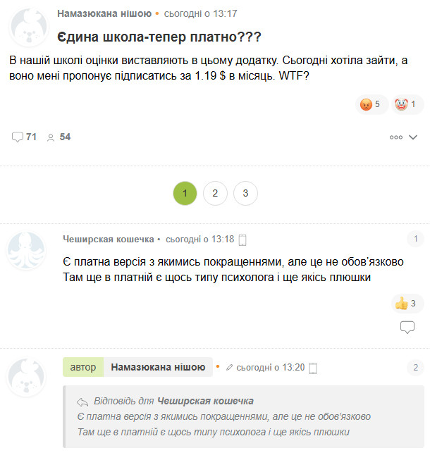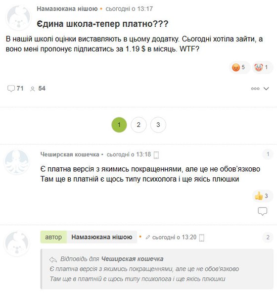 В соцсетях (например, на форуме Kidstaff) пользователи сообщают, что им генерирует подписку, часто со стоимостью ≈ 1,19$ (~49 грн) в месяц, и без нее, бывает, доступ к приложению блокируется. Один пользователь пишет: "Сегодня хотела зайти, а оно мне предлагает подписаться за 1.19$ в месяц. WTF?"
