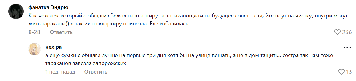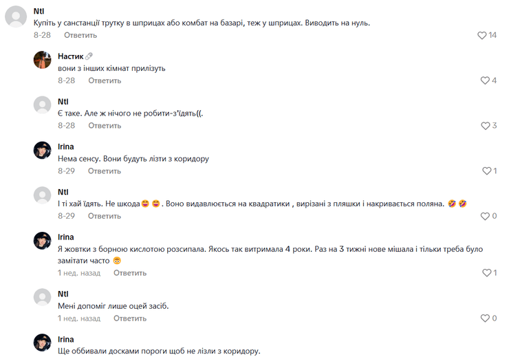Также пользователи поделились опытом, как можно попробовать избавиться от тараканов и клопов.