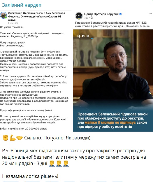 "Ничего нового": нардеп Железняк прокомментировал утечку в сеть данных 20 млн украинцев