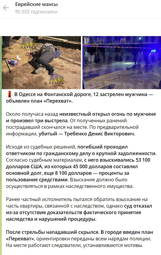"Исходя из судебных решений, погибший проходил ответчиком по гражданскому делу о крупной задолженности. Согласно судебным материалам, с него взыскивались $53 100, из которых $45 000 составлял основной долг, еще 8 100 долларов — проценты за пользование средствами. Взыскание должно было осуществляться в рамках наследственного имущества", – говорится в публикации.