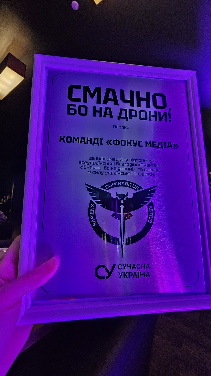 А партнерам акции "Вкусно, потому что на дроны!" вручили благодарности. И конечно же, команде Фокуса, как генеральному медиапартнеру благотворительной кампании.