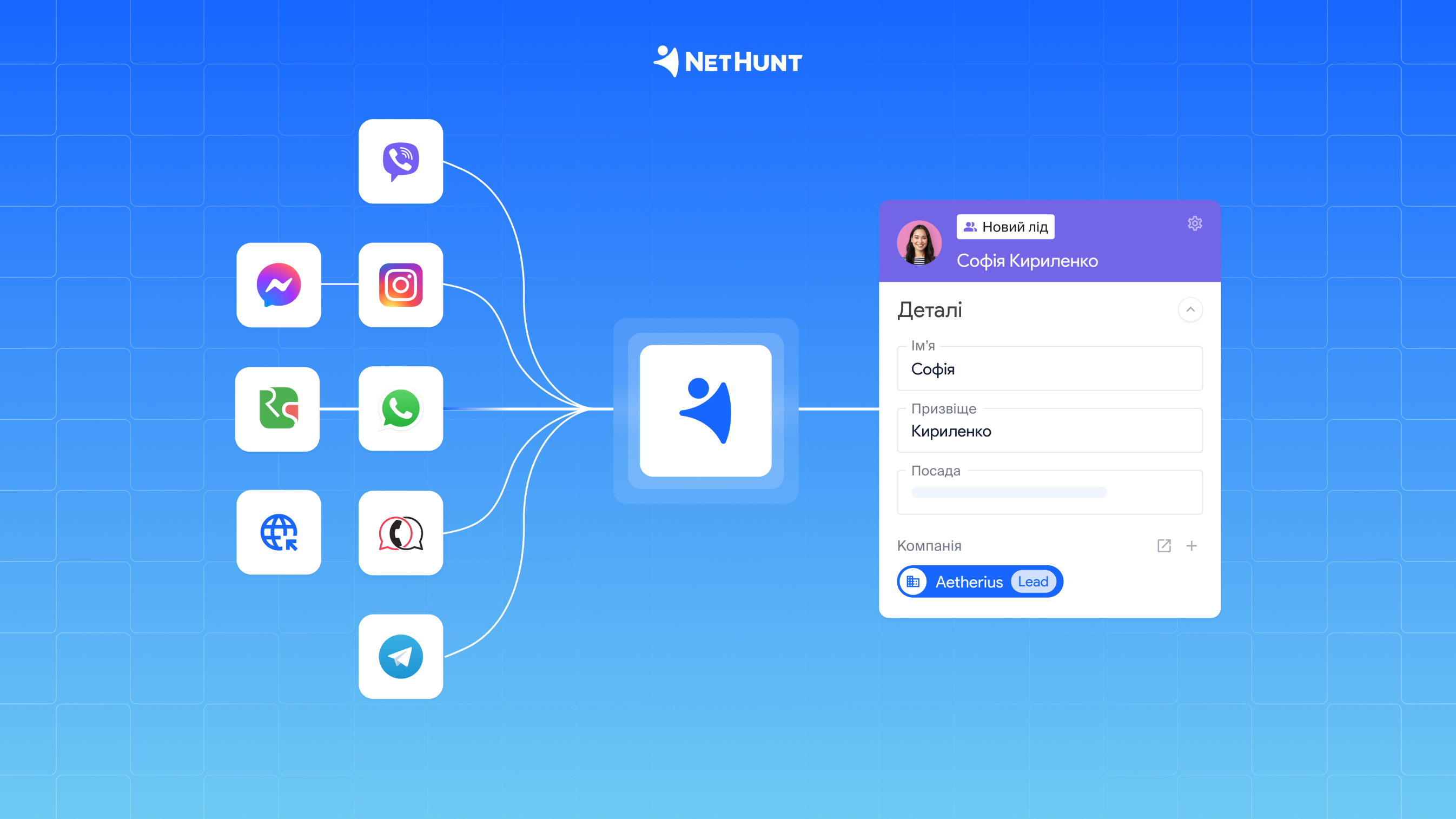 Ба більше, NetHunt CRM під’єднується до всіх інструментів, якими компанія користується щодня, — від каналів комунікації та телефонії до маркетингу, аналітики й HR. Це дає бізнесу єдину систему для роботи з клієнтами, де всі дані й взаємодії зібрані в одному місці.