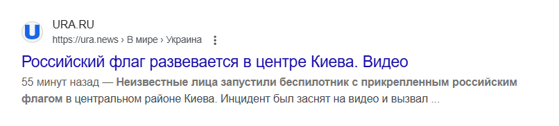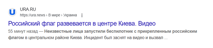 О случившемся написали и пропагандистские ресурсы. Один из материалов и вовсе озаглавили "Российский флаг развевается в центре Киева".
