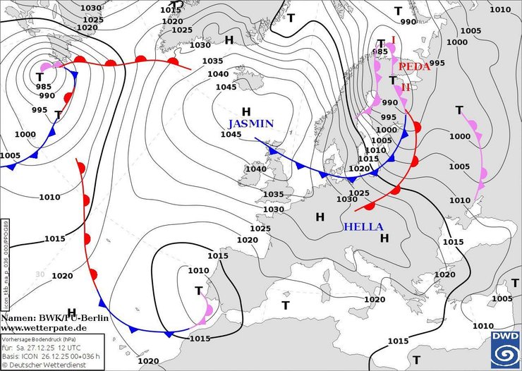 В ночь на 28 декабря в северо-восточной части страны осадки прогнозируются более интенсивными и локально будут достигать уровня значительного снега.