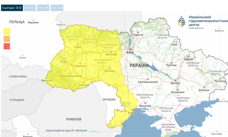 Также в Украине сохраняется холодная погода. По прогнозам синоптиков, в ночь на 1 января температура воздуха в некоторых регионах может существенно опуститься. В Карпатах ожидается до -16 градусов.