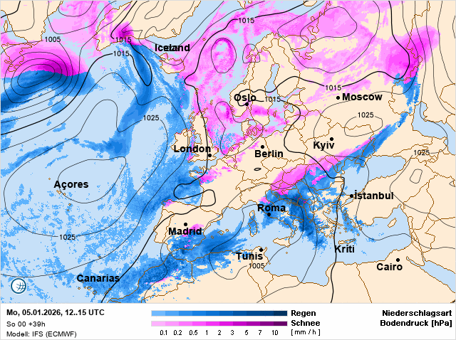 5 января погодные условия будут существенно отличаться в зависимости от региона. В большинстве западных и северных областей осадков не ожидается. Эти территории будут находиться под влиянием мощной области высокого атмосферного давления.
