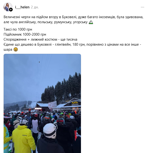 Блогер под ником i___helen написала в Threads о том, что в Буковеле много иностранцев.