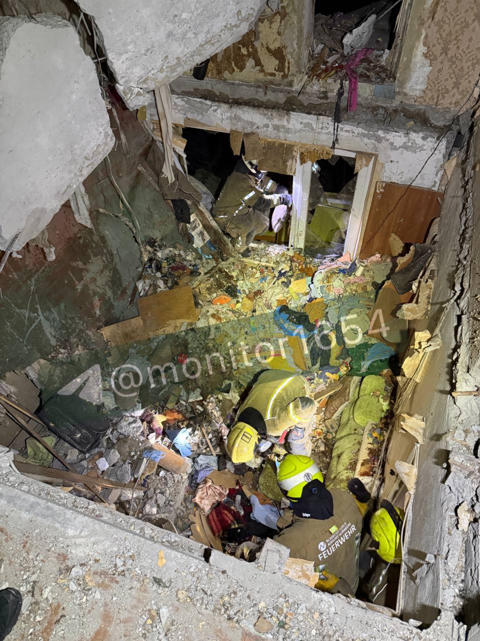 Разрушено перекрытие между 5 и 6 этажами.