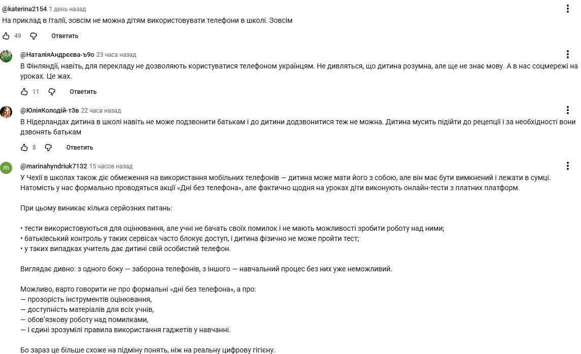 В комментариях под видео пользователи пишут об опыте запретов телефонов в других странах.