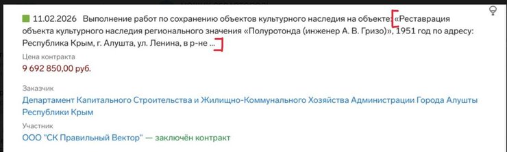 Компанию, которая должна была реставрировать полуротонду в Алуште, выбирал сам Аксенов. У нее есть контракты на объекты культурного наследия по всему полуострову. Фирма ООО "СК ПВ" существует шесть лет, но заказы начала получать год назад, и каждый из них — как единственный подрядчик, выбранный Аксеновым.