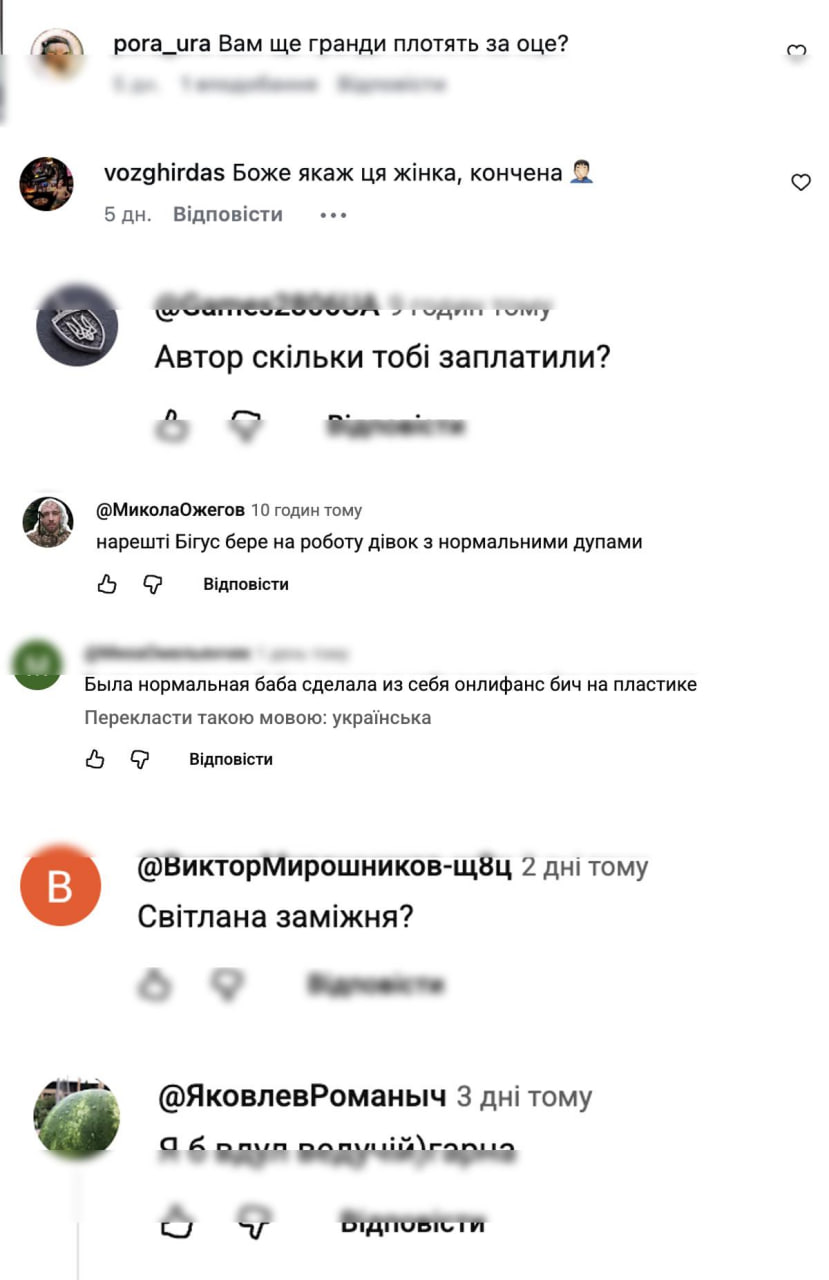 "Комментарии были в Threads, и в Инстаграме под видео. Но я не имела желания их скринить и сохранять. К тому же, надо было заниматься другим сюжетом, — рассказывает Светлана Стеценко, — Получать подобные сообщения в личные — это отвратительно. Но это не значит, что я остановлюсь и перестану делать то, что делаю", — отметила она.