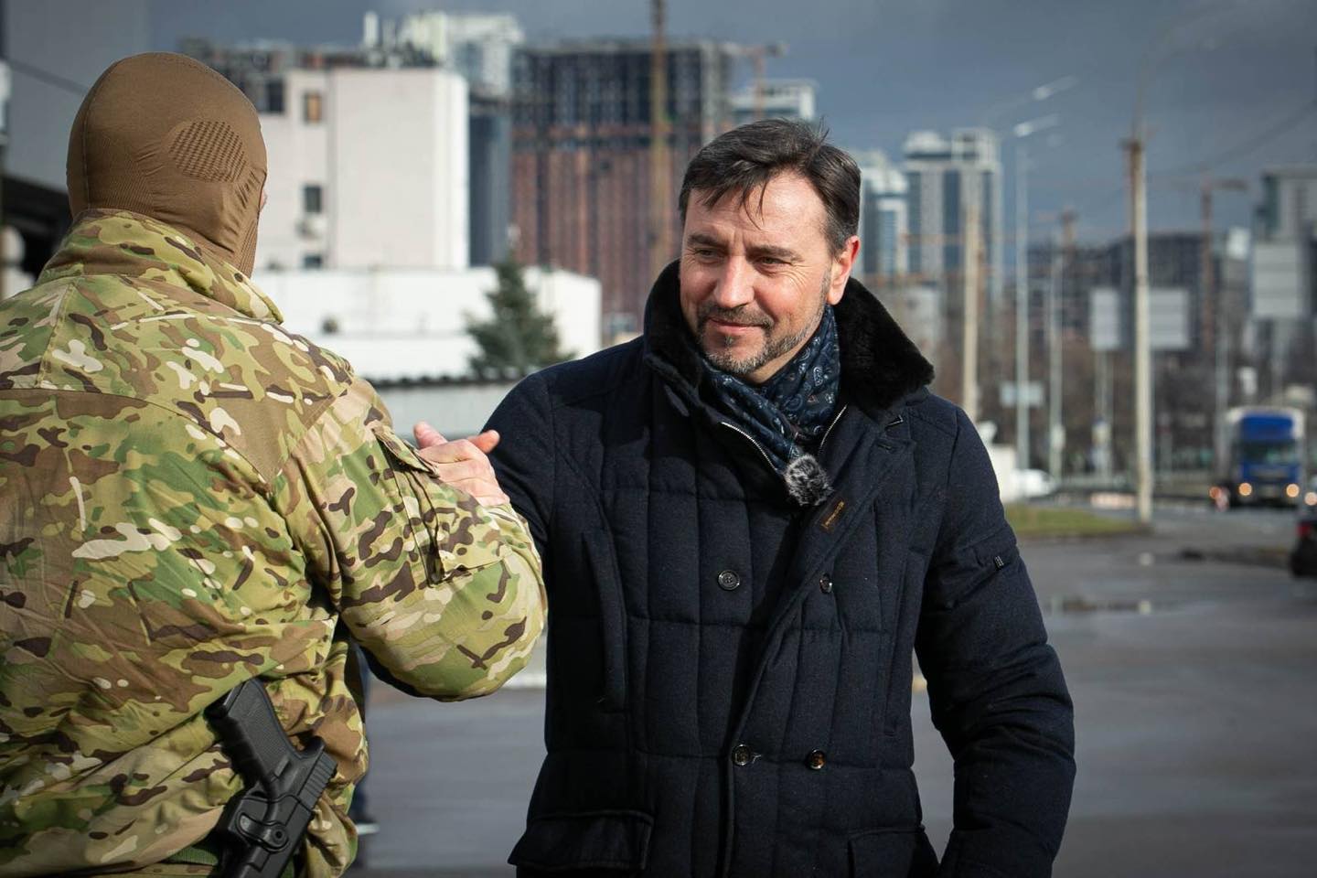 Вячеслав Лысенко во время передачи волонтерской помощи военным