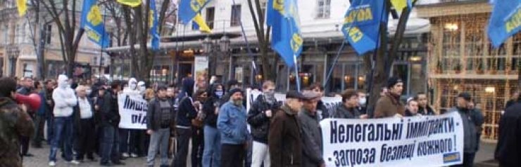 "За последние годы из Украины в поисках работы выехало 7 млн. трудоспособных украинцев, а на территорию Украины заехали миллионы мигрантов из стран Африки, Азии и Кавказа. Мы перестаем быть хозяевами своей земли. Нелегальные мигранты несут нам болезни, наркотики, безработицу и превращают улицы наших городов в очаги преступности и разгула этнической мафии. На месте бывших военных городков строятся общежития для нелегалов - завтра их будут заселять в наше жилье", - заявил на митинге координатор общенациональной акции против нелегальной миграции Андрей Ильенко.