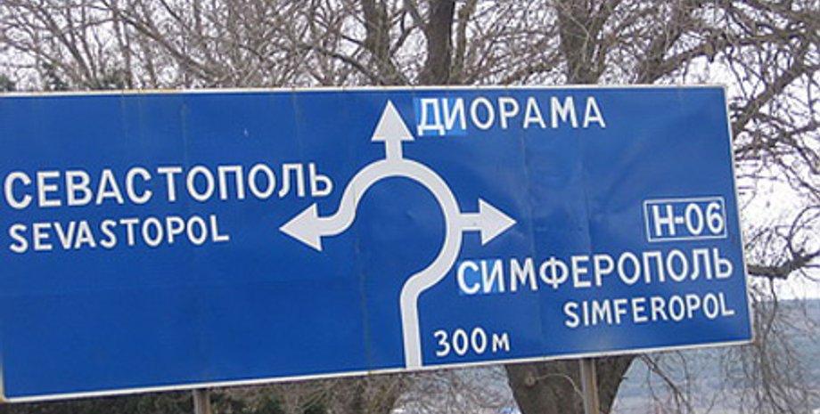 В Крыму неизвестные изменили надписи на дорожных указателях на въезде в Севастополь со стороны Ялты и вдоль Камышовского шоссе