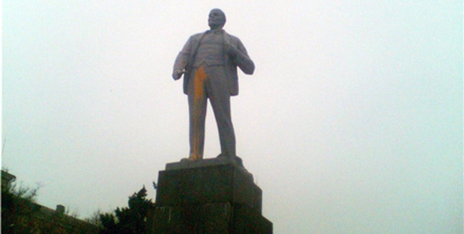 Монумент вождю мирового пролетариата был облит голубой и желтой краской, сообщает местная газета "Высокий вал". Произошел инцидент накануне приезда в город президента Виктора Ющенко.