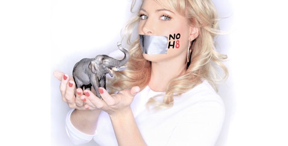 Фотография жены бывшего кандидата в президенты от Республиканской партии - Синди Маккейн - размещена на сайте защитников однополых браков No H8 Campaign. На снимке жена Маккейна изображена с заклеенным скотчем ртом и с надписью на щеке "NOH8" (Нет "Предложению 8").
