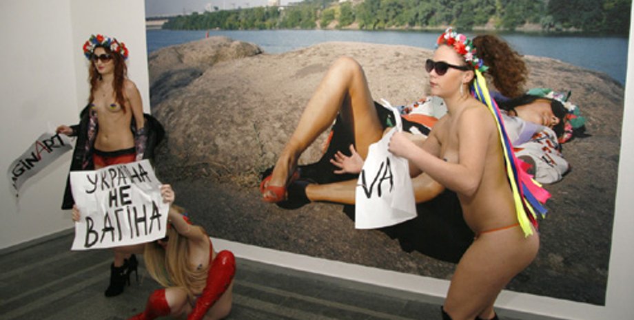 Женское движение FEMEN устроило акцию Вагинарт в киевском центре современного искусства PinchukArtCentre в знак протеста против выставки Сергея Браткова Украина