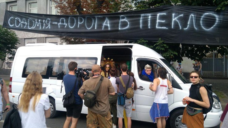 Противники марша попытались сопровождать представителей ЛГБТ-сообщества с черными транспарантами. На одном из них была надпись "Содомия – дорога в ад". Но их быстро оттеснили правоохранители.