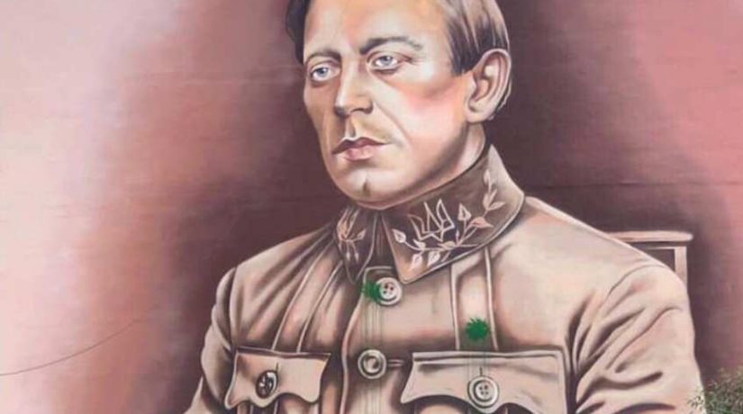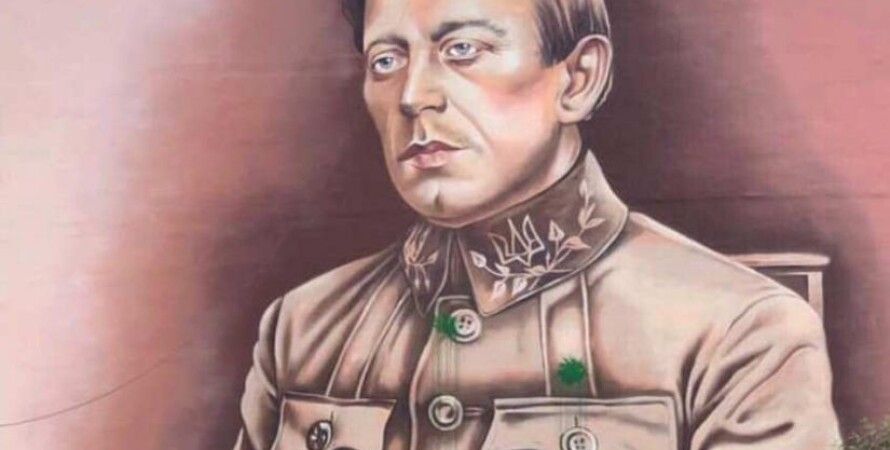 В Соломенском районе столицы неизвестные испортили зеленой краской недавно открытый мурал, посвященный Симону Петлюре.