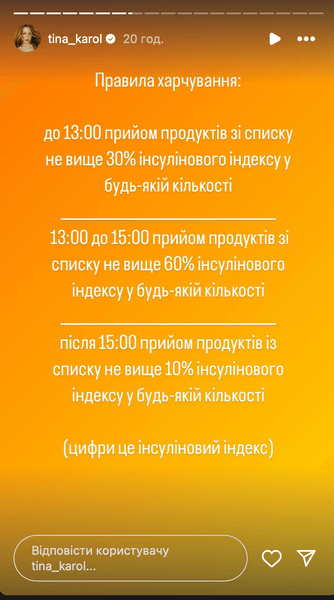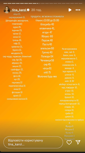 39-летняя украинская певица Тина Кароль раскрыла свои секреты стройности. Об этом артистка рассказала в Instagram-сторис.